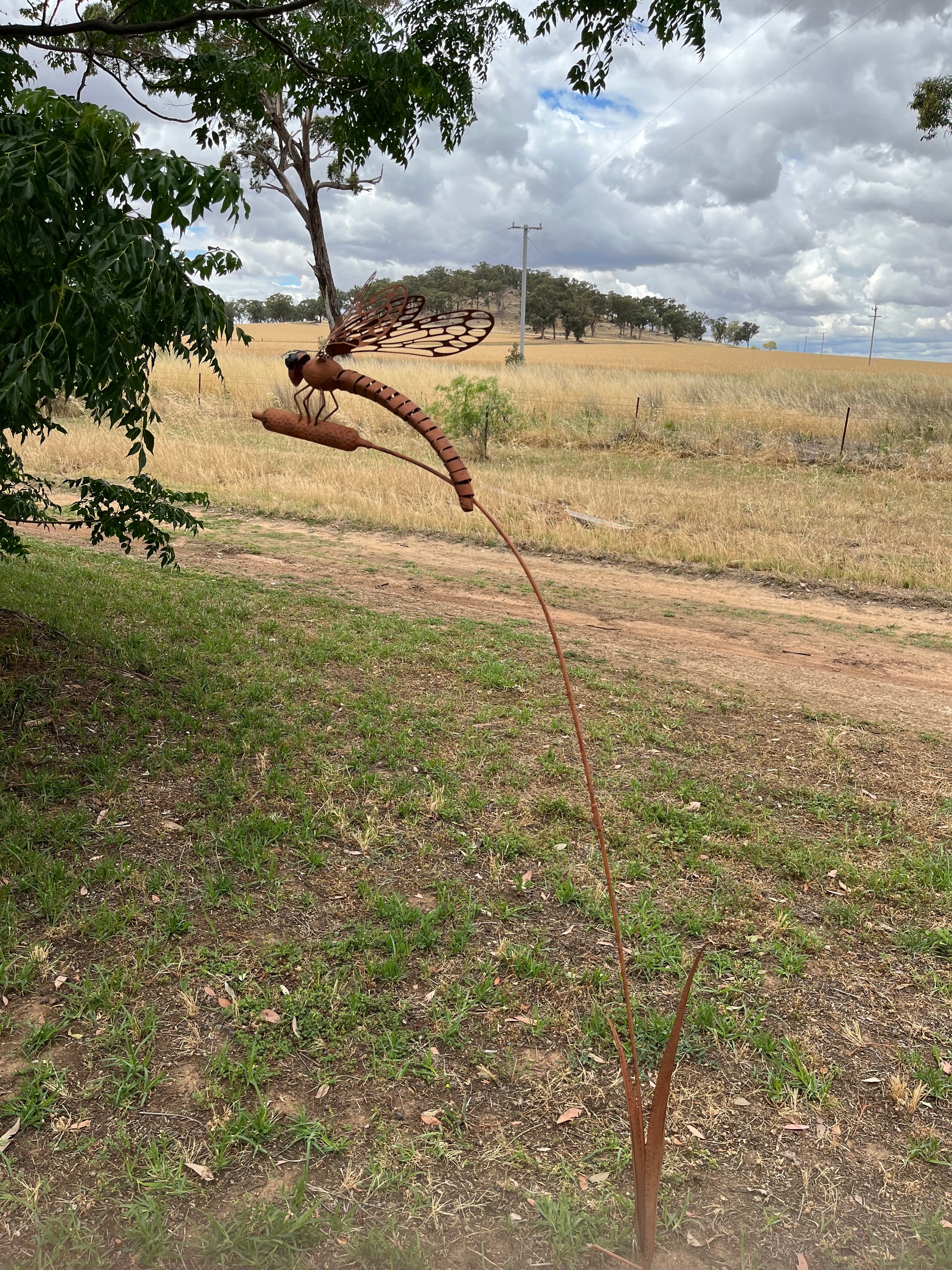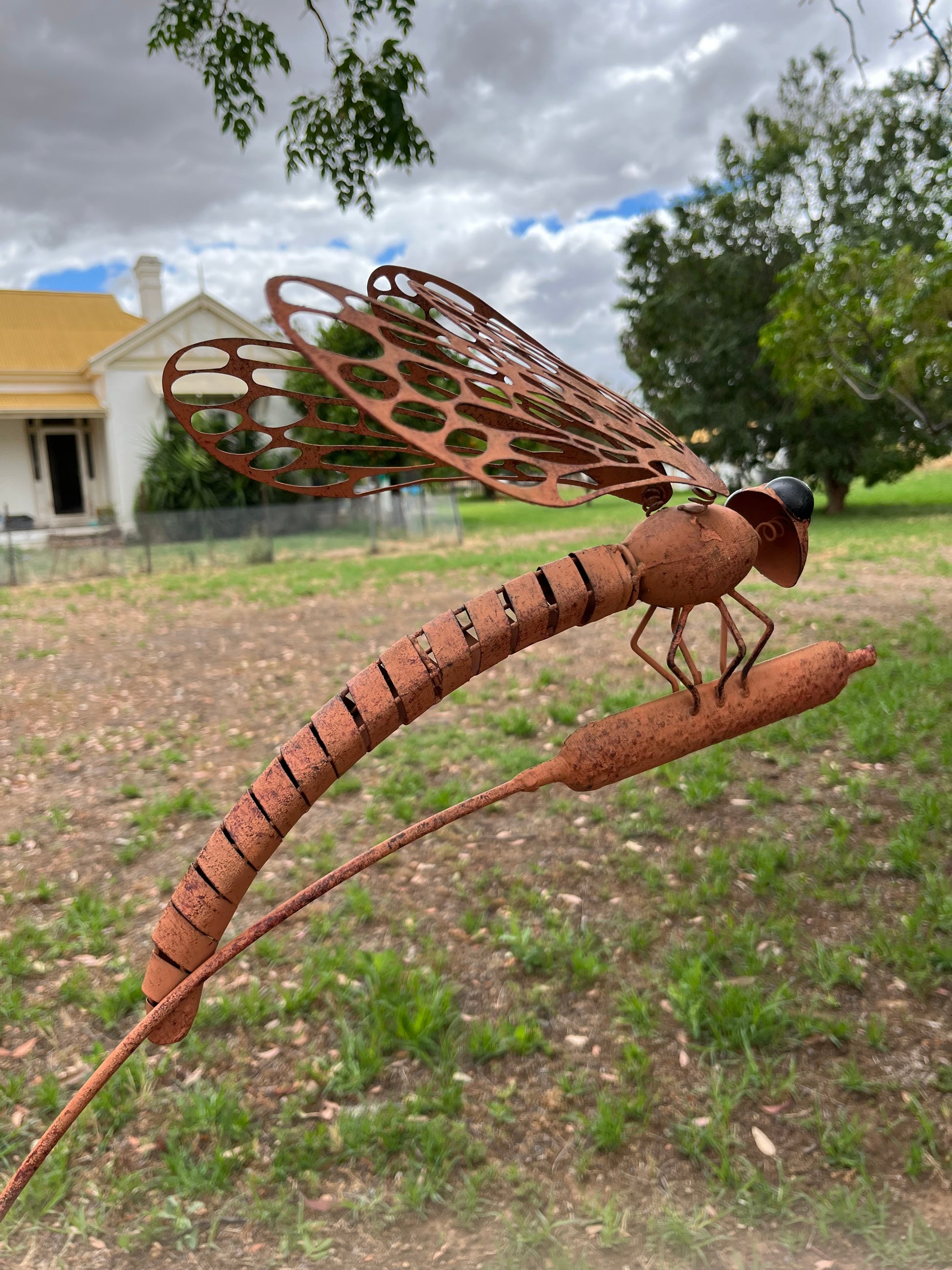 This striking garden stake brings elegance to outdoor spaces with its vibrant dragonfly design. Standing at an impressive 180cm, it commands attention while remaining gracefully proportioned at 50x33cm. Crafted with attention to detail, this piece combines decorative appeal with practical garden functionality, making it an ideal focal point for flower beds, borders, or landscaping displays. The bold colour palette ensures visibility and visual interest throughout seasons, while its substantial height allows it to integrate seamlessly into established garden schemes. Perfect for collectors and garden enthusiasts seeking statement pieces that blend artistic craftsmanship with outdoor utility.