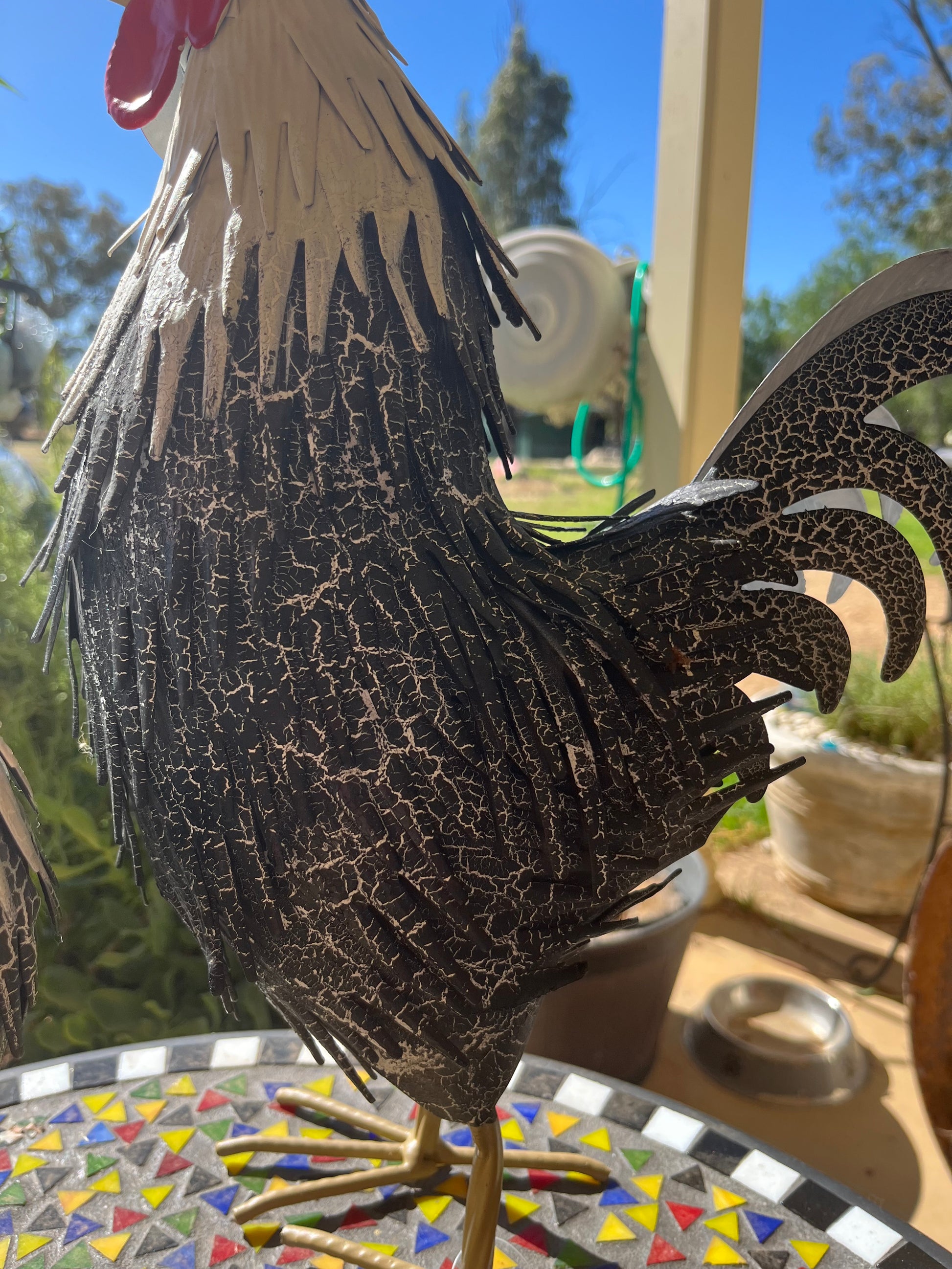 Mr and Mrs Rooster Chicken and Roster Metal Garden Ornament
