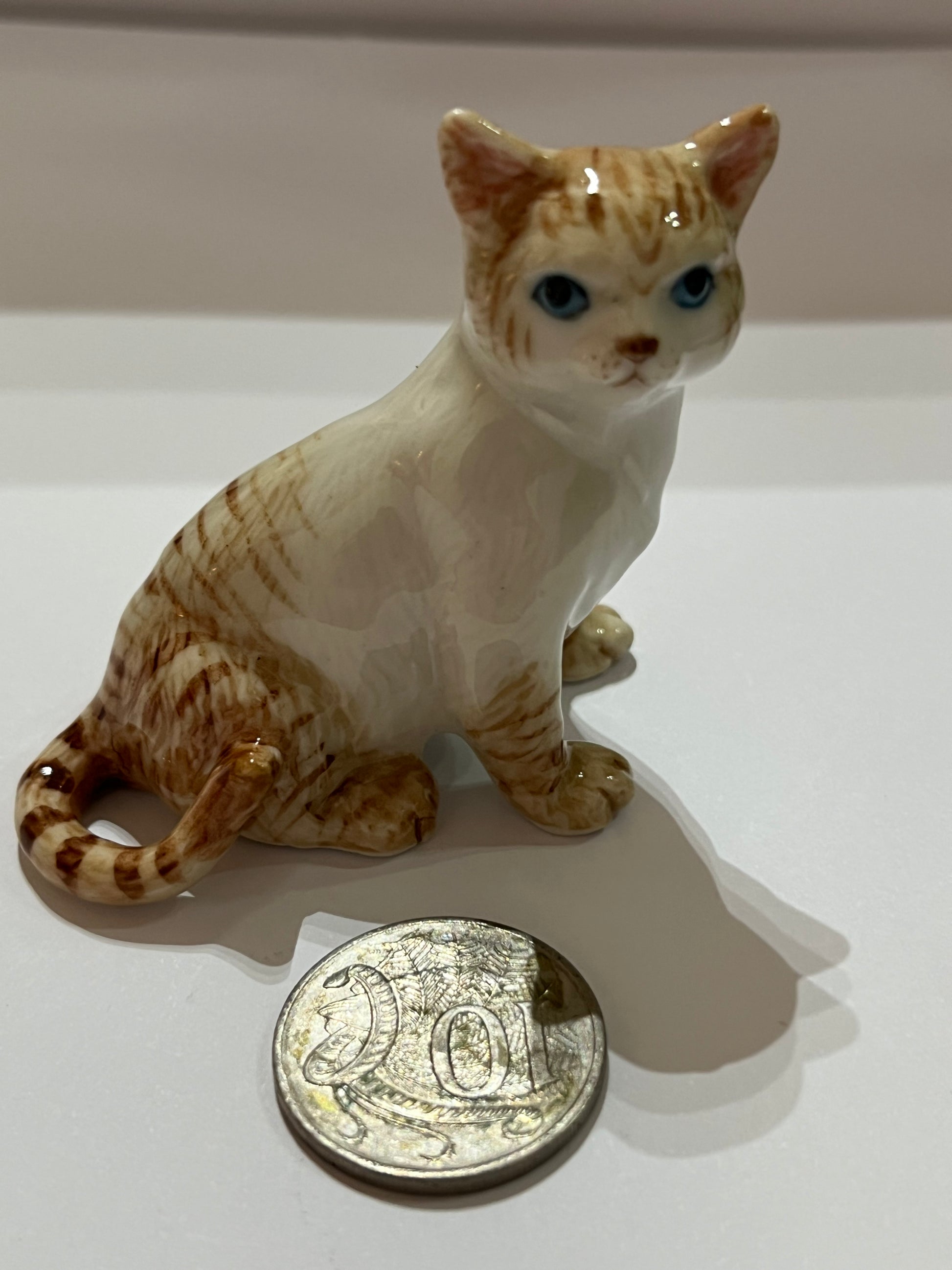 Take a look at our huge range of hand painted porcelain cat figurines. High quality miniatures with attention to detail. We literally stock hundreds of animal miniatures so take a look at our other miniature animals. The miniature white and ginger cat measure approximately 3cm wide and 5.5cm high.