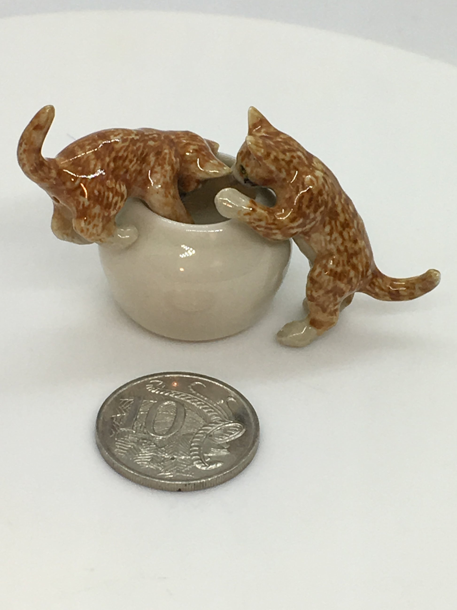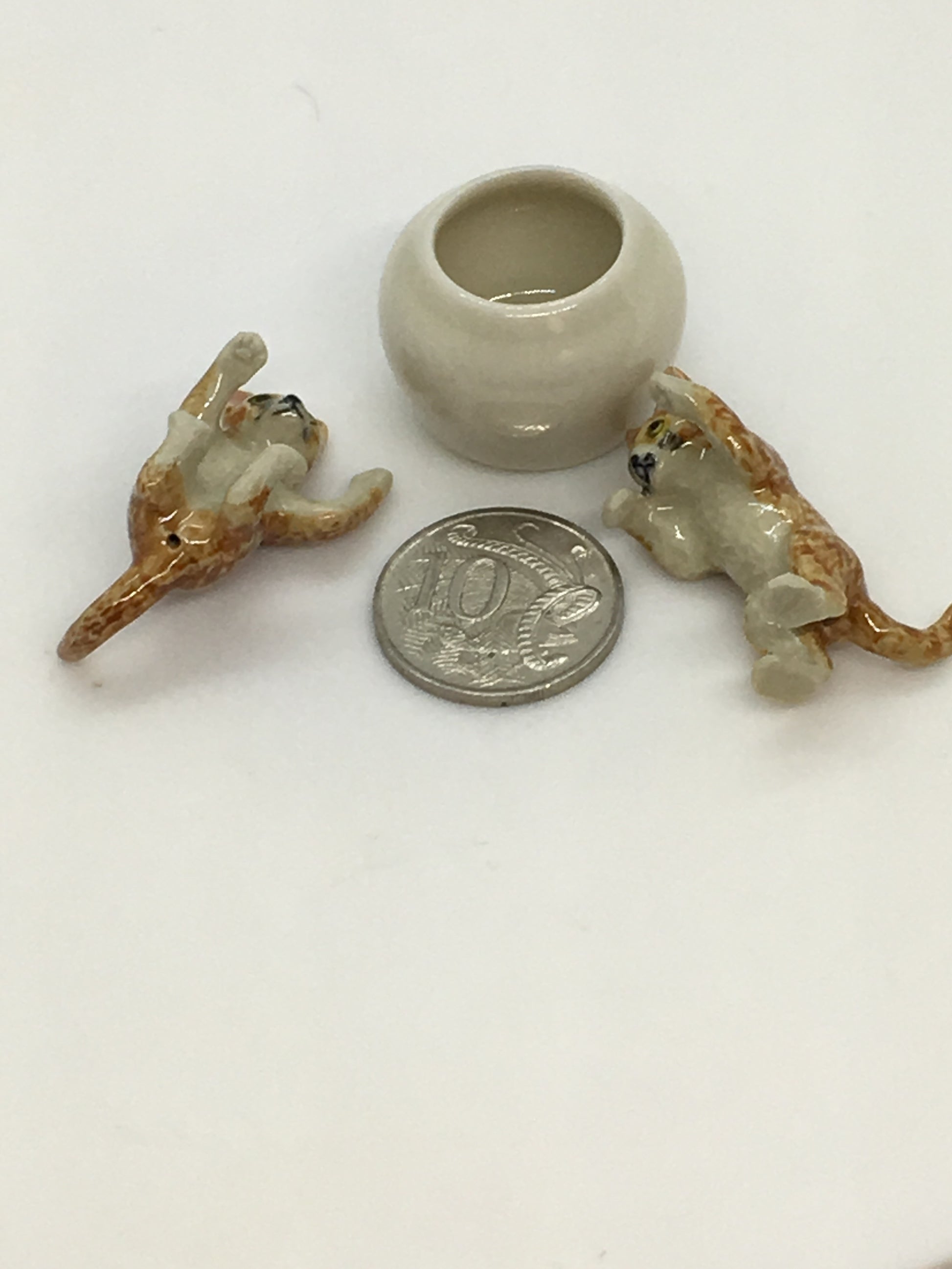 Take a look at our huge range of hand painted porcelain cat figurines. High quality miniatures with attention to detail. We literally stock hundreds of animal miniatures so take a look at our other miniature animals. The miniature ginger kittens/cats in jar. measure approximately 3cm long and 4cm high, the jar measures approximately 3 cm in diameter. (3pcs)