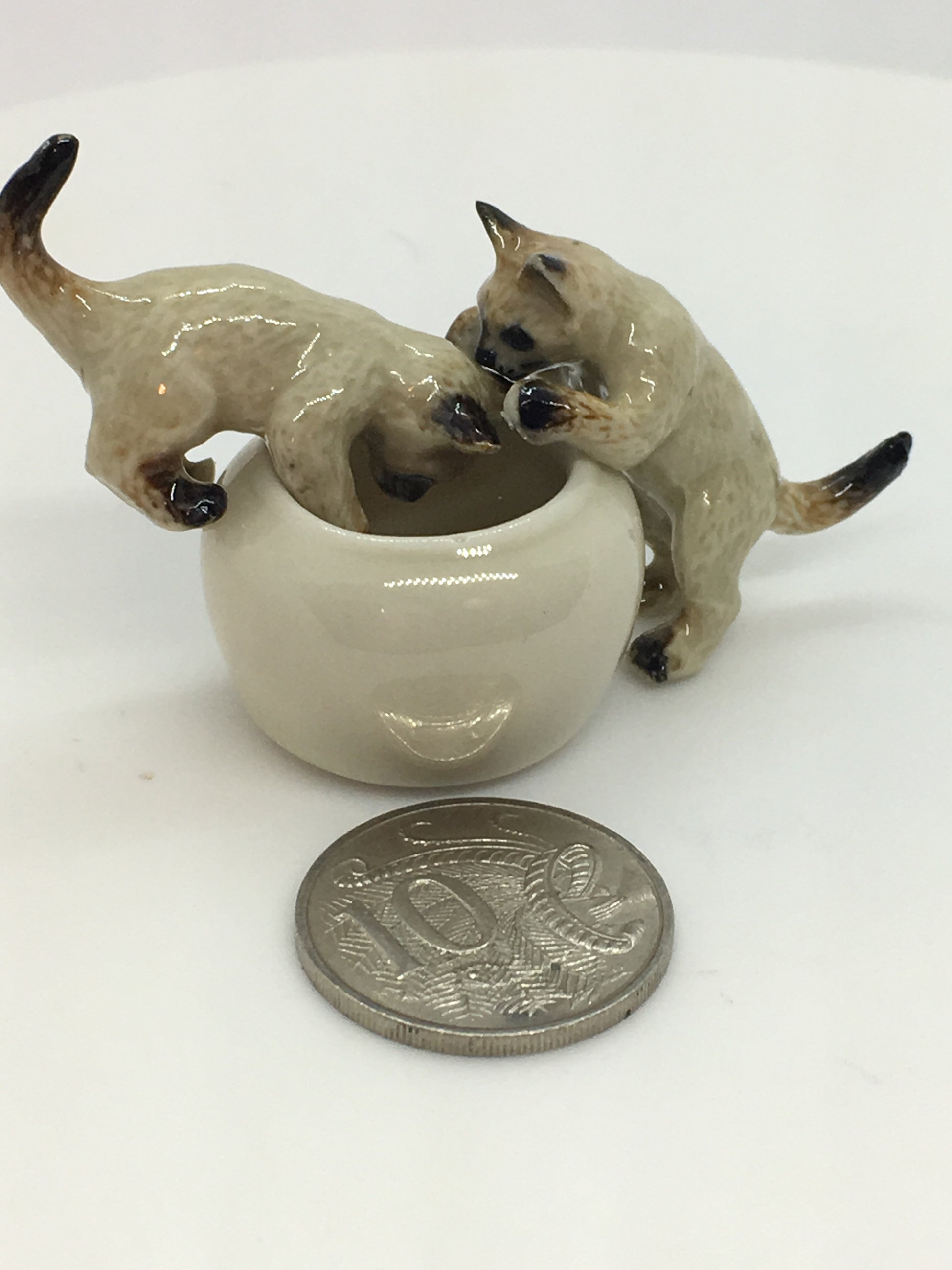 Miniature Porcelain Cats Kittens Figurines Siamese Cats In Jar