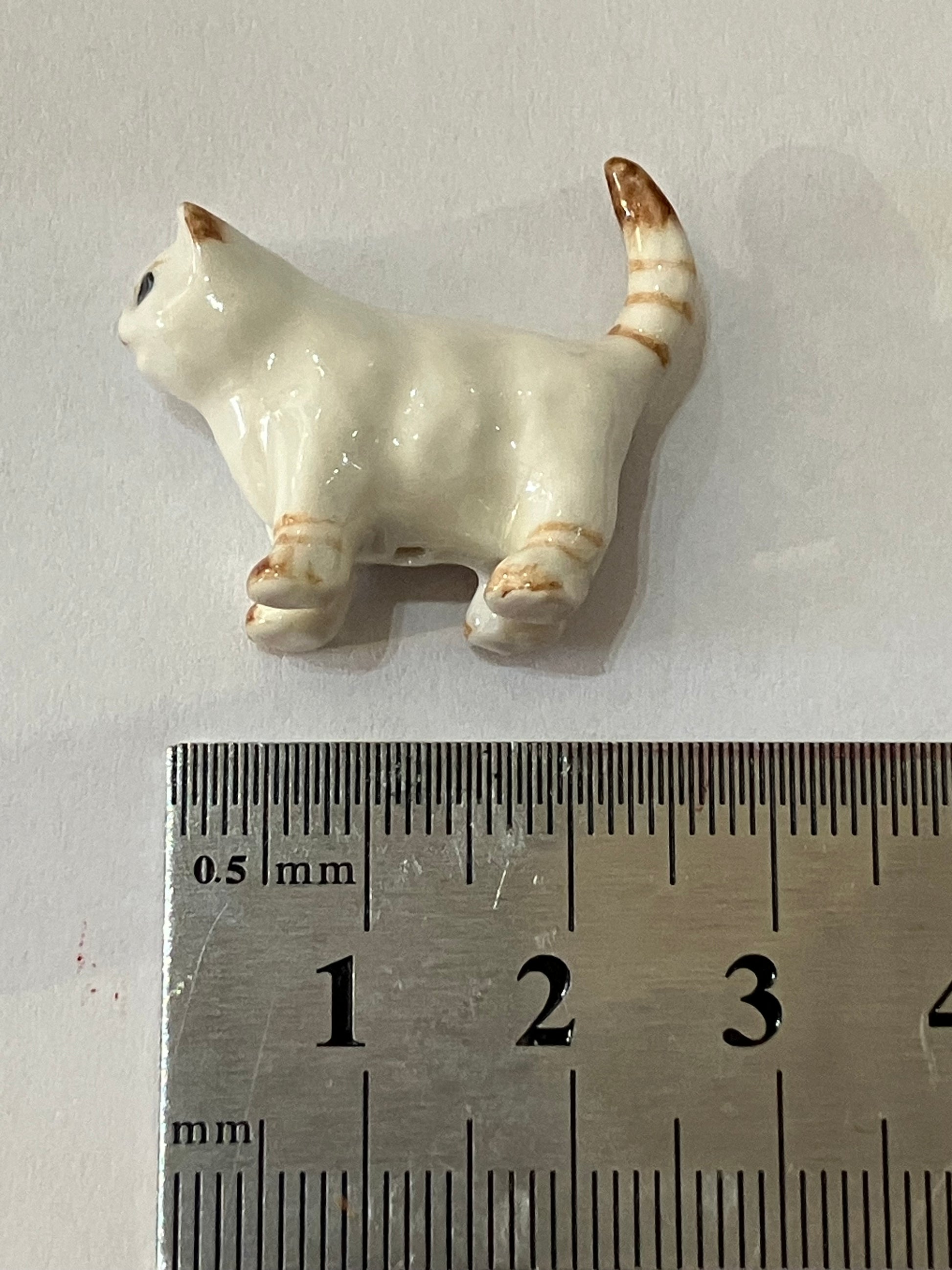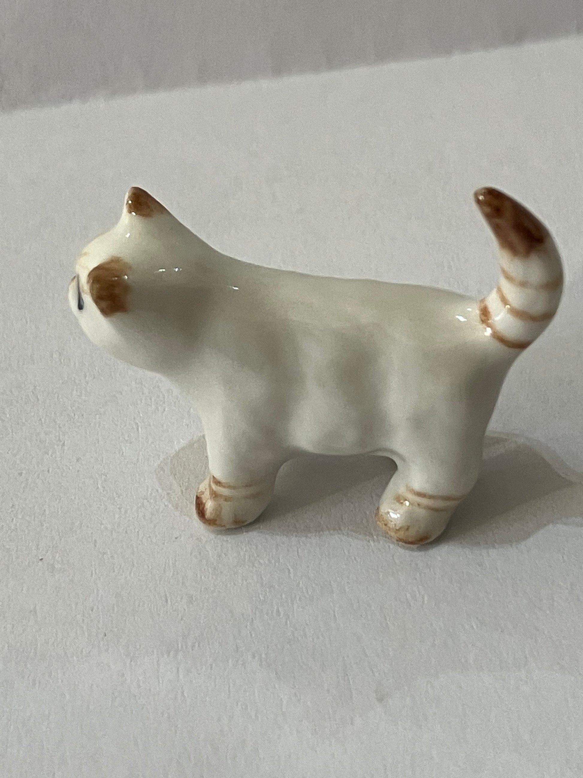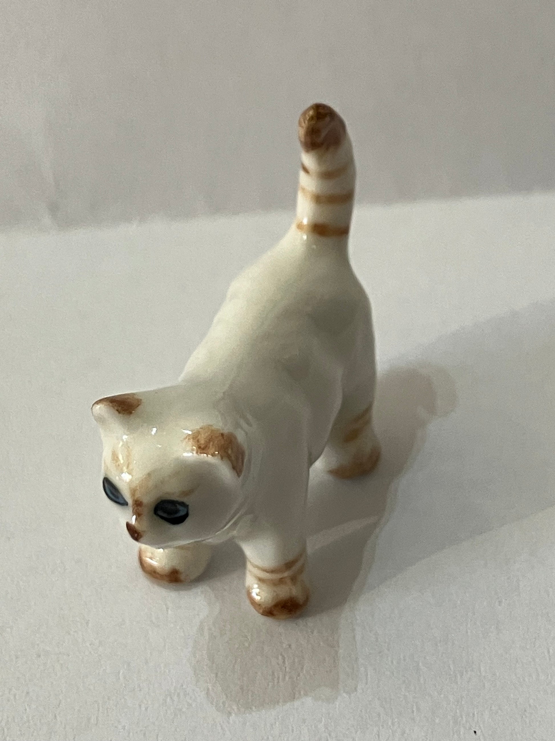 Miniature Porcelain Cats Kittens Hand Painted White and Ginger Kitten Mini