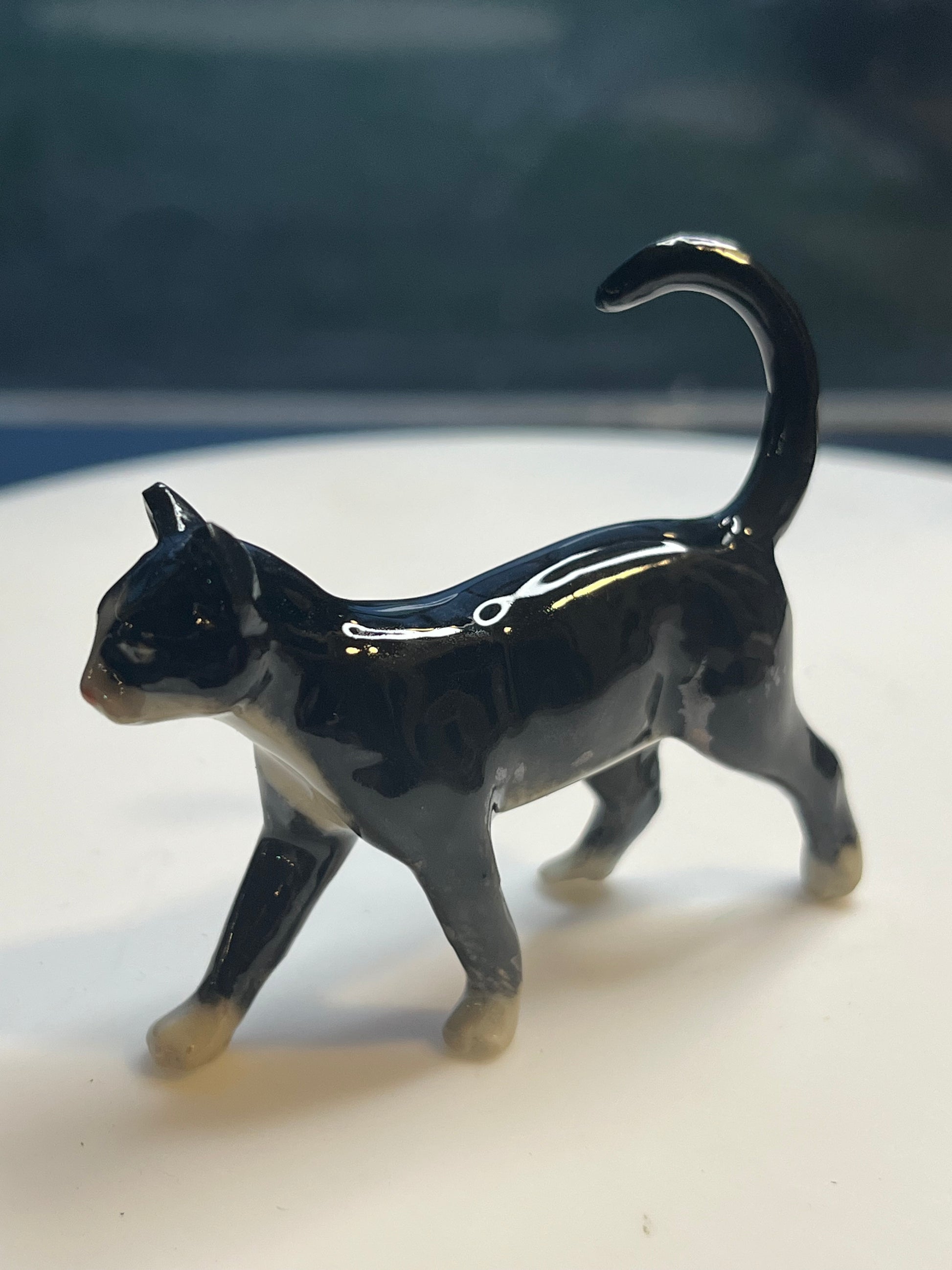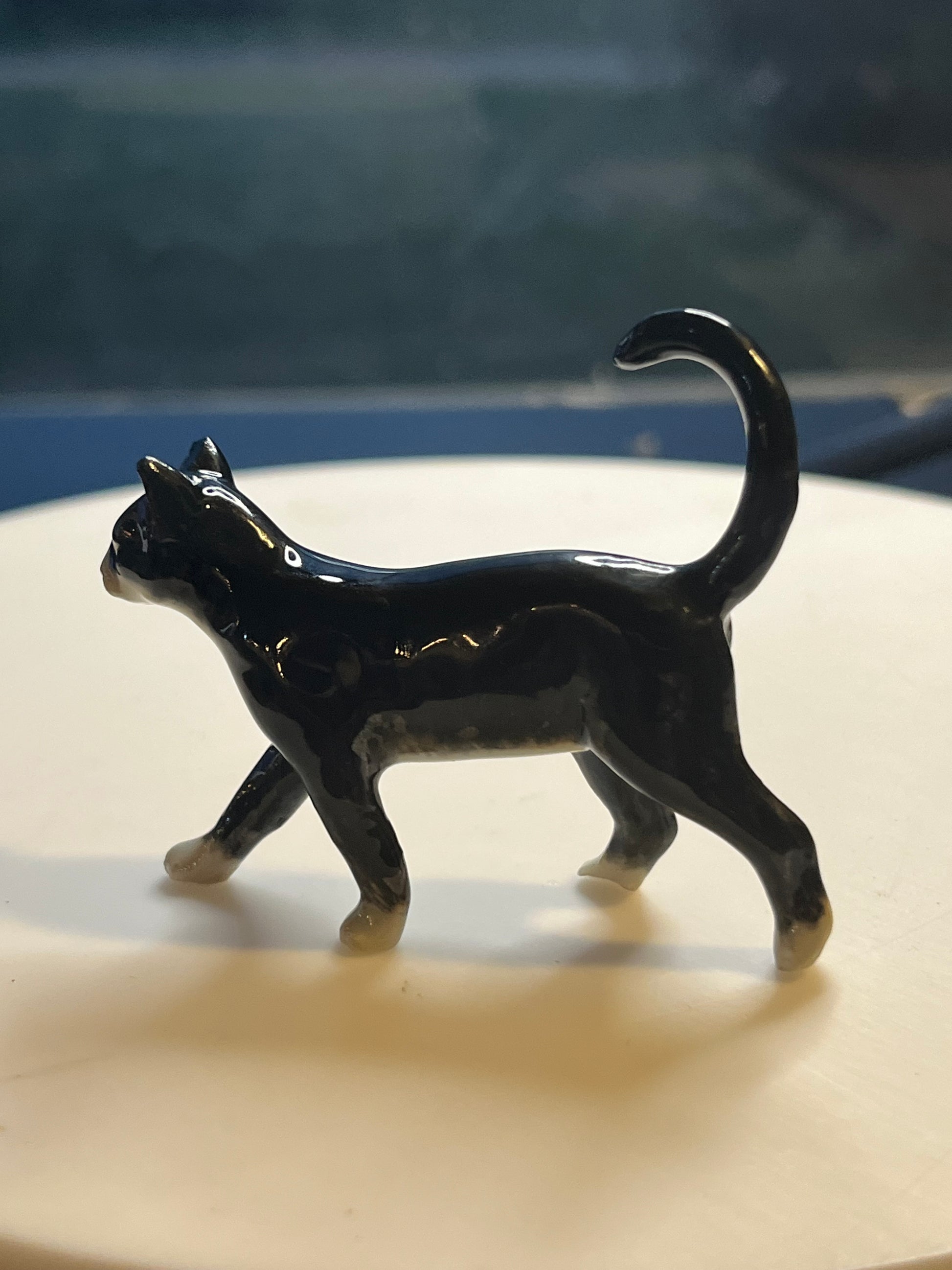 Miniature Porcelain Tuxedo Cat Walking